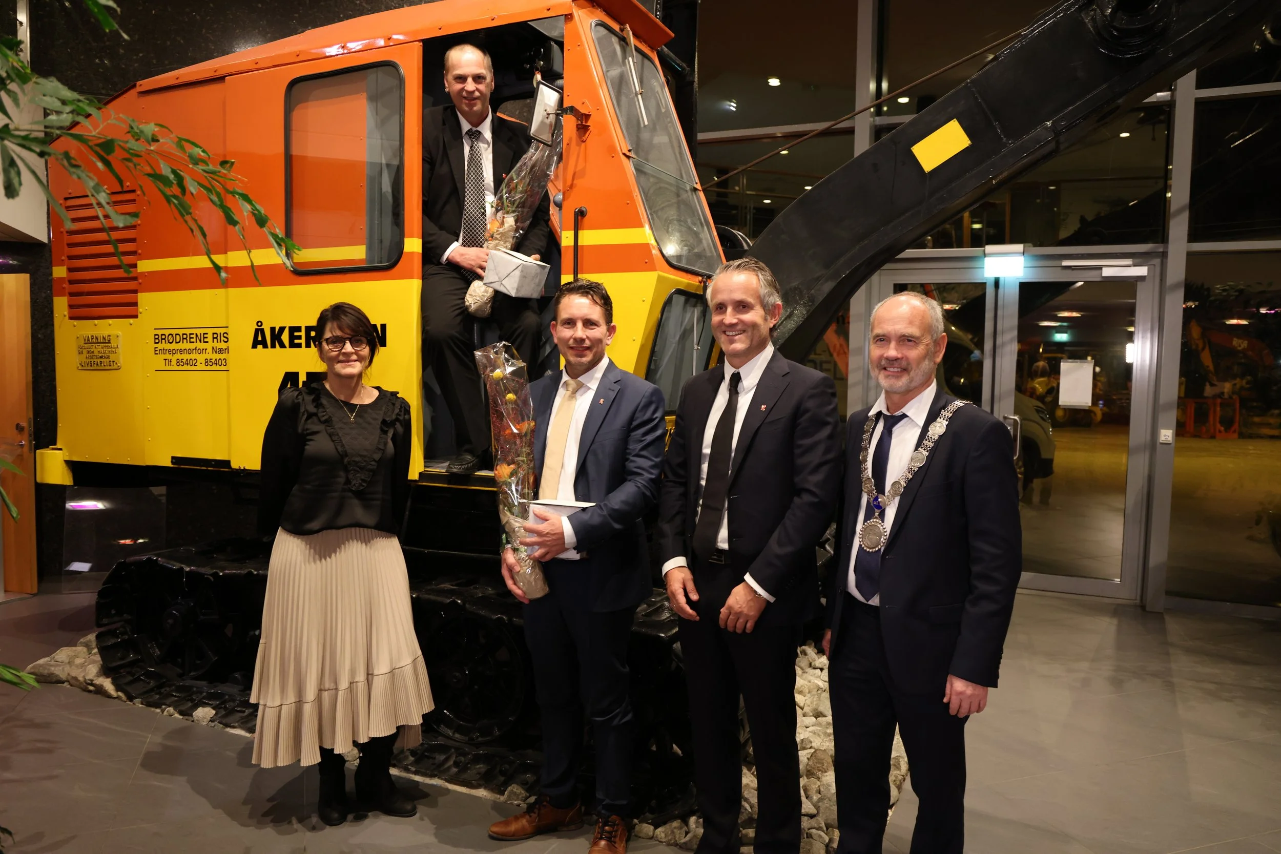 F.v. Personalsjef Torill Sigurdsen, Odd Magne Lode, Arvid Svalestad, Daglig leder Bjørn Risa og Ordfører Jonas Skrettingland