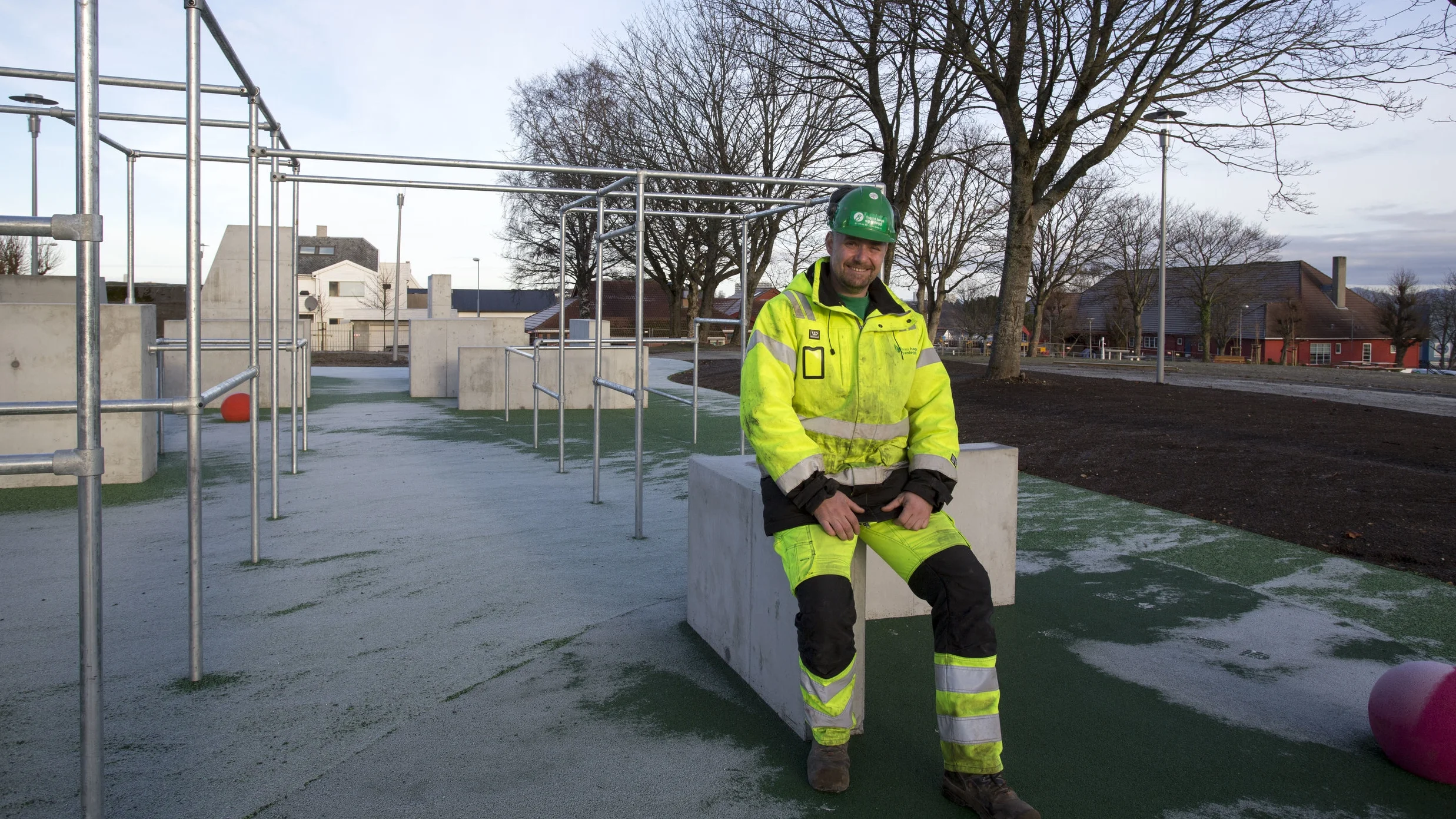 Dette har vært en grei jobb. Det eneste vi måtte passe på var høyspentkabler i bakken og at det er en vernet bunker på området. Jeg liker slike prosjekter der vi får gjøre hele jobben fra grunnen av. Vi har vært 2-4 personer i 8-9 uker på dette, og den skal være helt klar utpå våren.