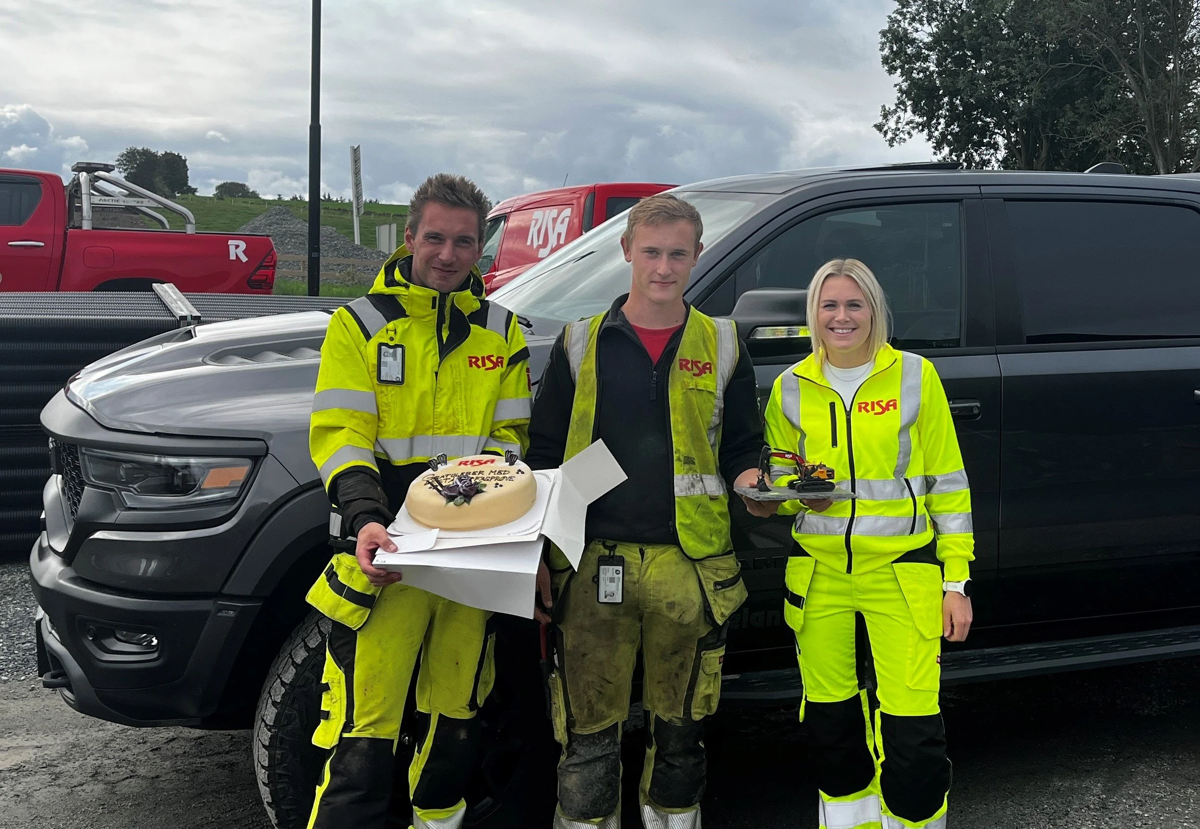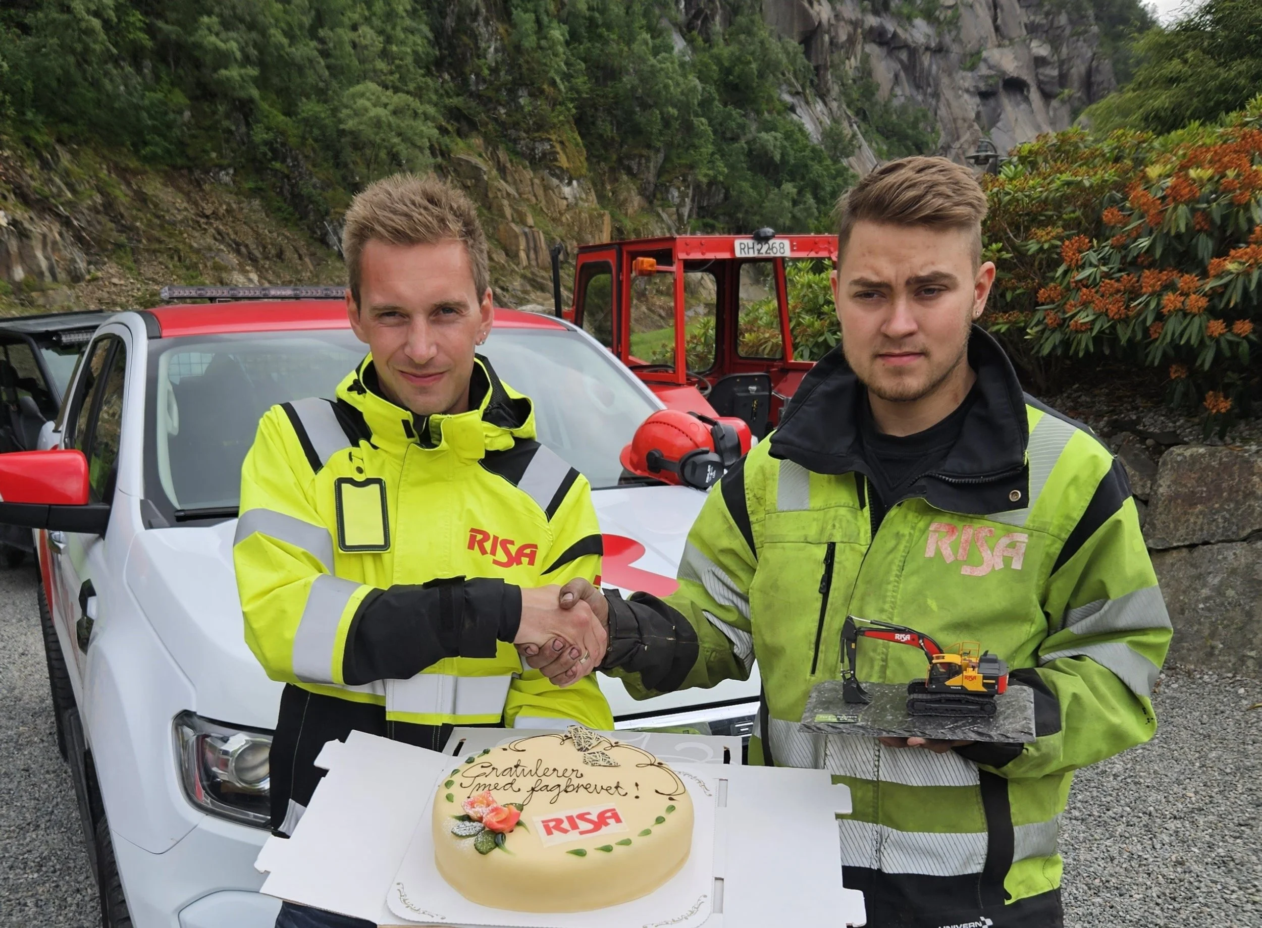 Svein Arild Tandrevoll og Kathrine Lilleland som er lærlingansvarlige i Risa reiser og markerer alle lærlinger som består fagbrev hvert år ute på prosjekt.